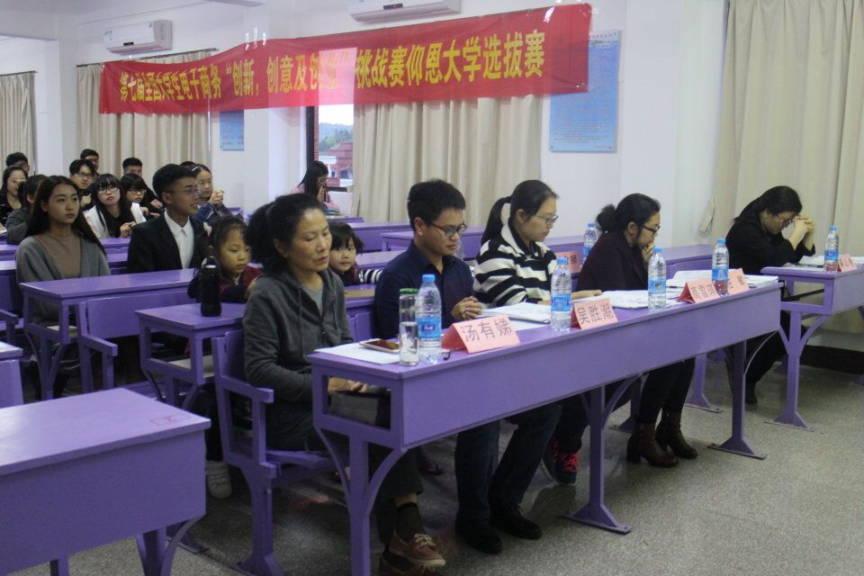 为响应国家大学生自主创业的号召,激发当代大学生自主创业的热情,培养和提升大学生的创造精神、创新意识和创业能力,促进实现以创业带动就业,以实践深化理论的培育目标。第七届全国大学生电子商务“创新、创意及创业”大赛永利集团选拔赛,于2017年 4 月 26日 至27日晚在吉龙楼401顺利举行。 应邀出席本次大赛并担任评委的有学生事务部主任吴胜潮、yl9193永利集团院长何杨英、yl9193永利集团党总支书记兼副院长高雪琪、yl9193永利集团副院长任敏、财务管理系主任薛小青、会计系主任蒋鹏飞、yl9193永利集团教师汤有娣教授、yl9193永利集团辅导员林金狮。共有来自yl9193永利集团的27支队伍参加本次比赛。