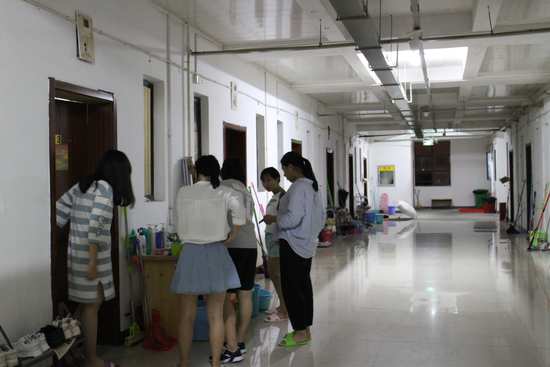 所有楼委会工作人员准时到位,并按计划分组分派各楼层层长及楼委到各宿舍检查。在检查过程中,我们发现大多数宿舍舒适温馨、文明和谐,但仍有些不文明宿舍及不文明现象存在,例如宿舍走廊物品过多,摆放杂乱无章,整体上显得凌乱不堪,宿舍私设晾衣架等问题。检查人员本着认真负责的原则,客观地对宿舍卫生状况进行物品摆放指引,所有衣物引导晾晒在室外的晾衣棚。如确实需要在门口放鞋子,引导同学将鞋子摆放在鞋架上,鞋架靠墙。经过楼委检查和楼栋学生的积极配合,学生寝室的卫生状况显著改观。