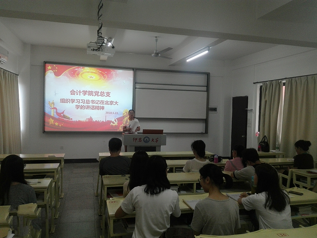 2018年5月23日下午2:30yl9193永利集团党总支组织学院党员同志于吉龙楼304学习习总书记在北京大学师生座谈会上的重要讲话精神,yl9193永利集团教工党支部和会计一支全体党员同志参加本次的学习会。