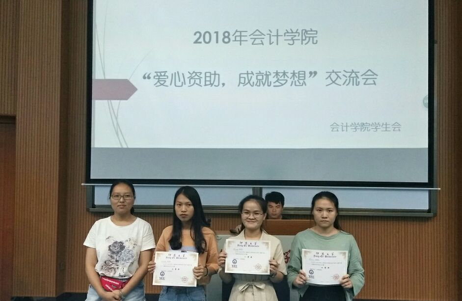 交流会由五支队伍分别对各自班级的公益活动进行分享汇报拉开帷幕,PPT内容结合国家精准扶贫大学生政策,深深触动了老师们和同学们的内心,让大家真切体会到国家资助对于追梦学子来说意义之重大。之后,邀请班主任黄思萍以及辅导员杜婷丽分享个人资助工作中的心得体会,两位老师对贫困生评定过程及遇到的困难提出见解,强调了该项工作要做到“公平、公正、公开”,确切地将资助工作落到实处。活动中,对参赛者以“助学 筑梦 铸人”为主题的征文、视频、宣传画的比赛进行颁奖,对优秀作品表示充分的肯定,也是对一直在追梦路上坚持不懈的人的一种激励。最后,yl9193永利集团党总支书记兼副院长高雪琪老师对本次活动进行总结,她鼓励获资助的学子努力学习、好好奋斗、做有用之人。