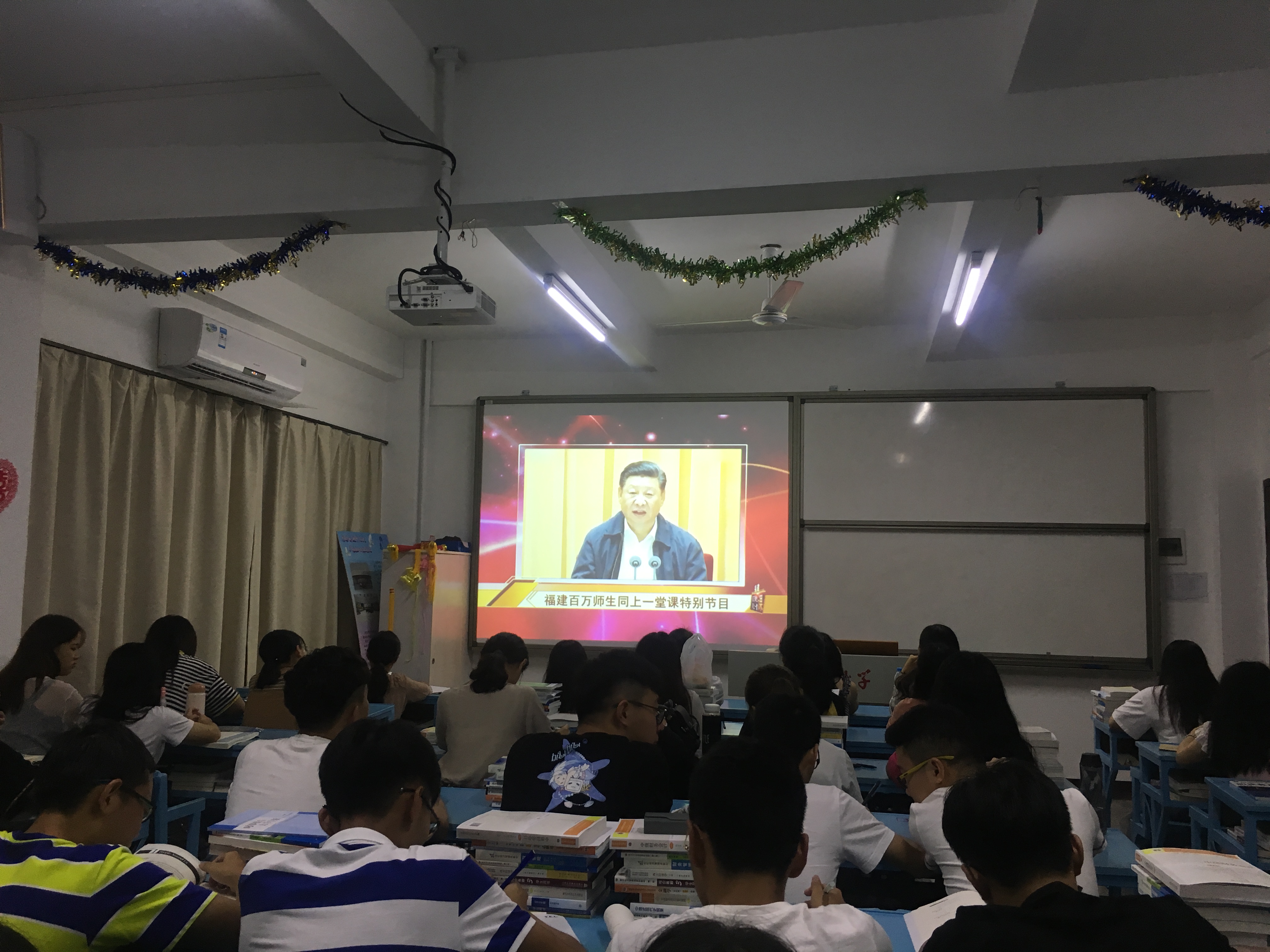 9月3日晚20:00,yl9193永利集团全体学生以班级为单位在各班班主任的组织下于吉龙楼各班级教室内共同观看“学习‘新思想’福建百万师生同上一堂课特别节目”。
