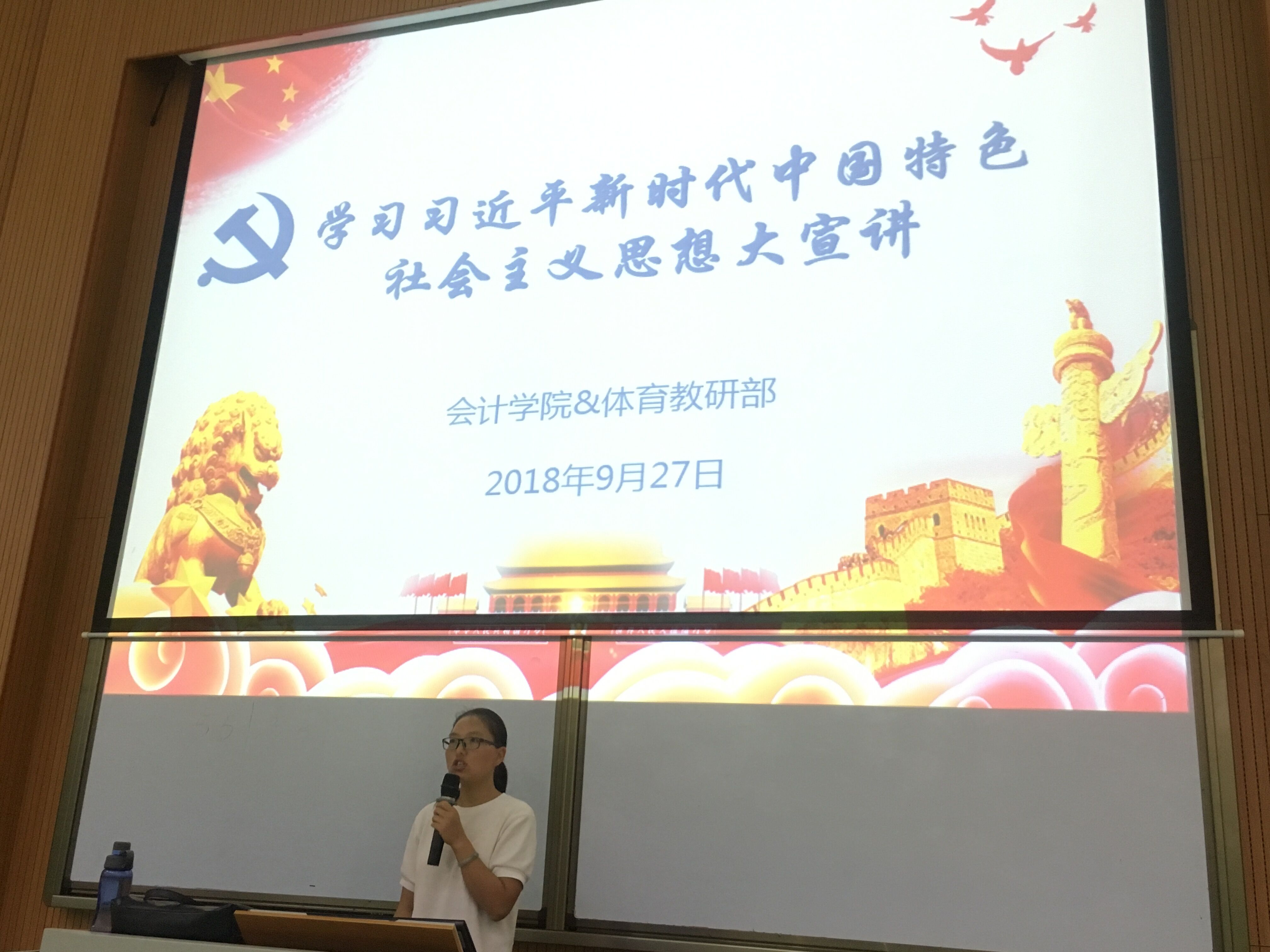 为了进一步开展好习近平新时代中国特色社会主义思想“大宣讲”, 推动我院进一步兴起习近平新时代中国特色社会主义思想“大学习”热潮,加强全体师生的理论学习,9月27日下午4:30,yl9193永利集团党总支联合体育教研部在第一教学区和昌教学楼乐之讲堂开展以“十九大报告中的哲学思想”为主题的宣讲报告,体育教研部全体教师、yl9193永利集团全体教师、全体党员及入党积极分子参与学习。