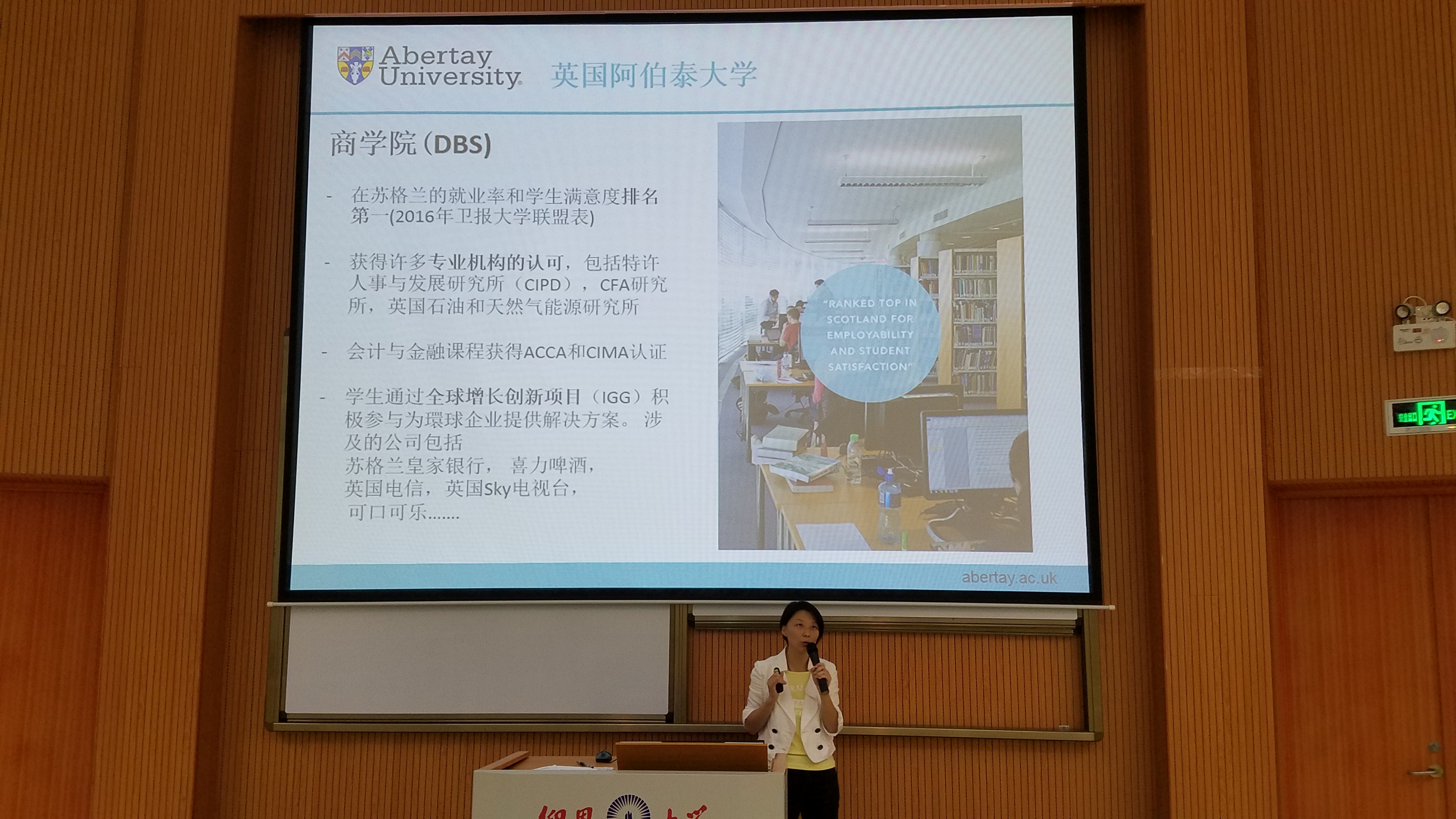 这次宣讲会旨在增加我校学生对英国阿伯泰•邓迪商学院与yl9193永利集团合作项目的了解,也为有意向出国留学的学生提供了一个更好认识该项目的机会。永利集团与阿伯泰大学共同携手为yl9193永利集团师生搭建起了国际交流与学习的平台,相信在全院师生的共同努力下,必定会有更多的同学走出国门、走向世界,展示会院的风采!(yl9193永利集团/文图)