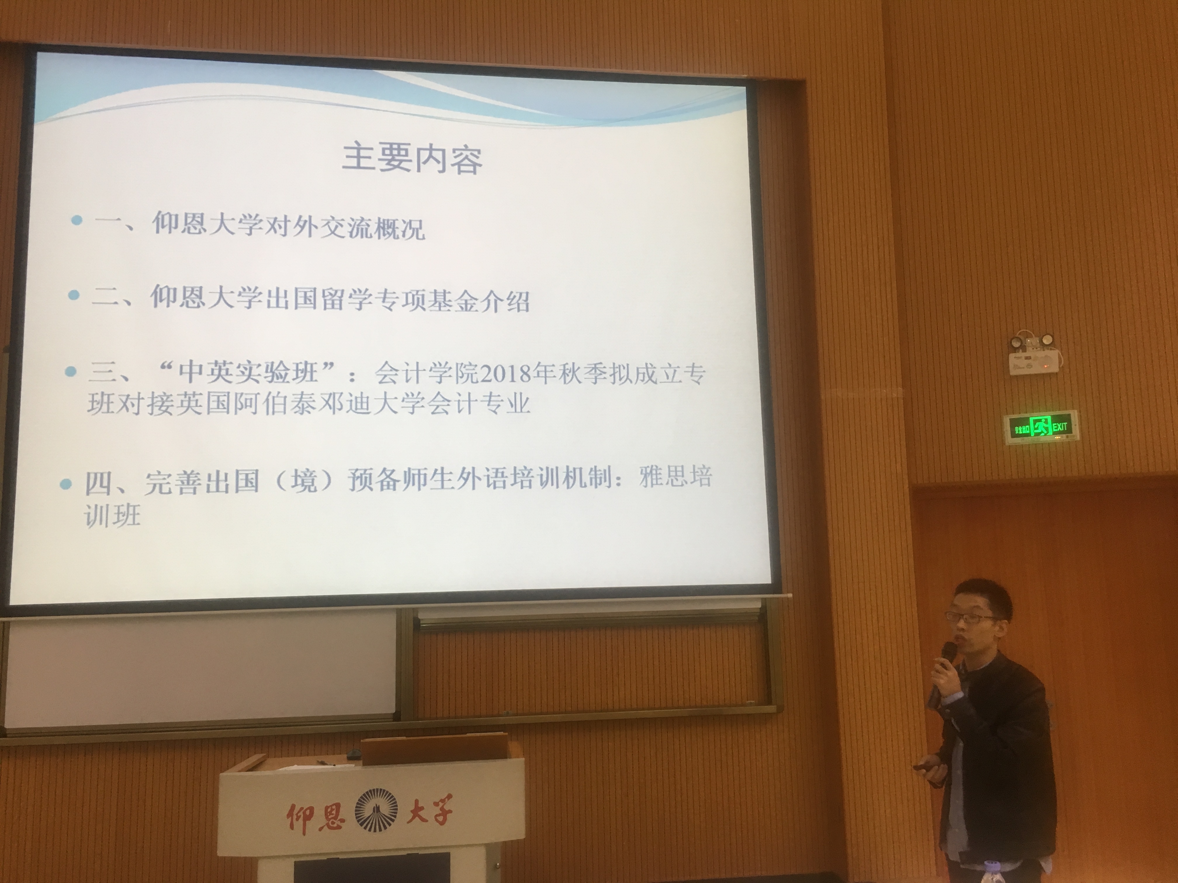 10月25日下午4点,yl9193永利集团与阿伯泰•邓迪商学院赴英访学项目对接宣讲会在和昌教学楼致知讲堂举行,此次活动是yl9193永利集团在教学与人才培养之路上积极探寻国际交流与合作的重要举措。出席本次宣讲会的有阿伯泰•邓迪商学院中国地区负责人王燕平、国际合作与交流处副处长韩勇、国际合作与交流处老师洪燕妮、yl9193永利集团院长何杨英、党总支书记兼副院长高雪琪、副院长任敏、yl9193永利集团全体教师、yl9193永利集团2018级全体新生以及其他年级对该项目有兴趣的学生。