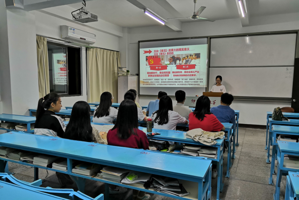 2018年11月08日晚上7:00,yl9193永利集团学生第一党支部于吉龙楼203教室,召开“新时代、新思想、新担当、新作为”学习交流会。yl9193永利集团党总支书记高雪琪和会计一支全体党员同志参加了此次的学习交流会。