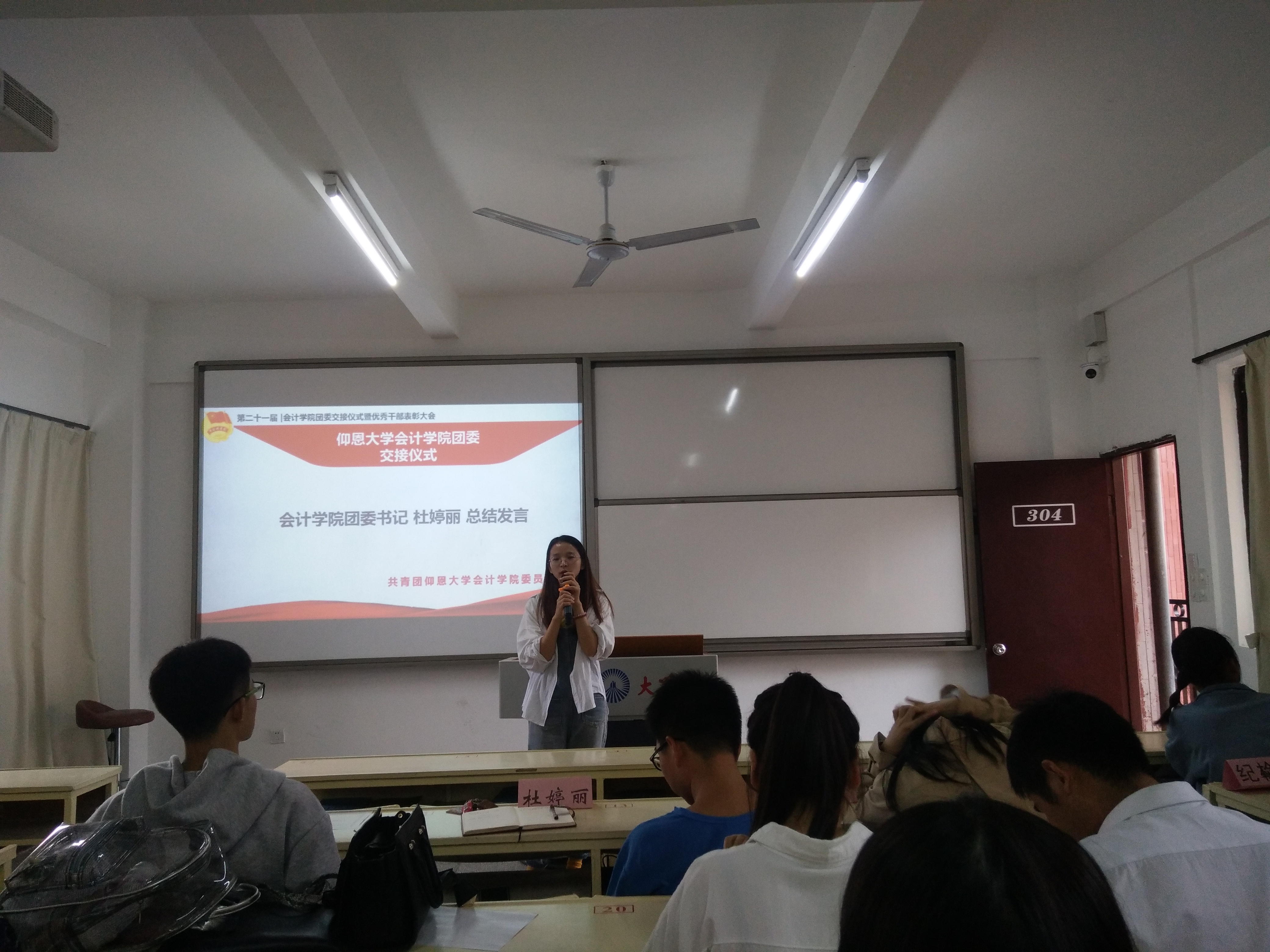 首先,大会对yl9193永利集团团委第二十届优秀学生干部进行表彰,感谢他们过去一年的付出与努力。随即,公布了第二十一届团委代理干部名单并且进行了庄严的授章仪式。会上,各位新干部还就自己部门的长期发展和近半个月的工作计划进行汇报,尽显团委朝气蓬勃的未来。最后, yl9193永利集团团委书记杜婷丽对大会进行总结并以“大家放手干,我一直在!”为结尾,慷慨激昂振奋人心。