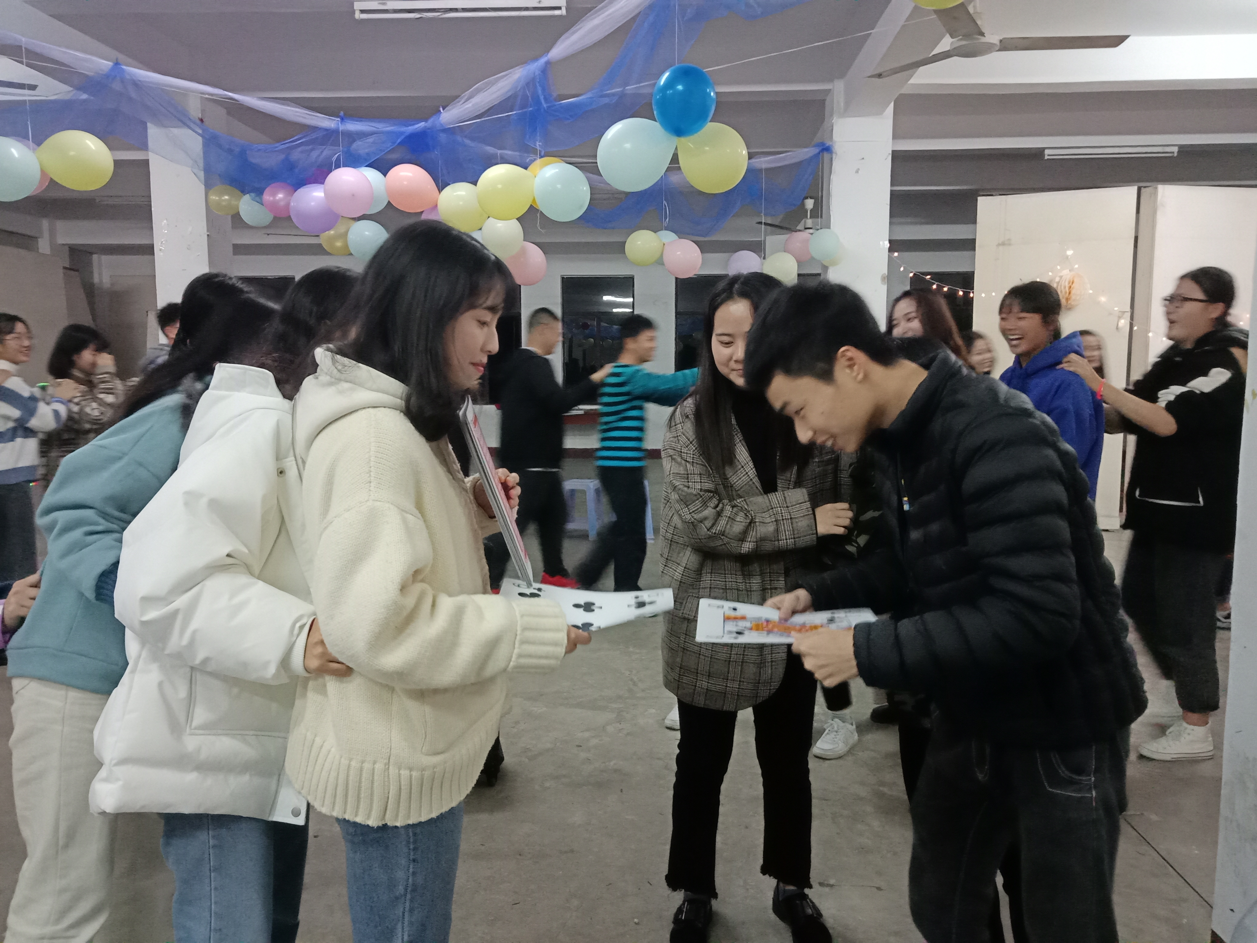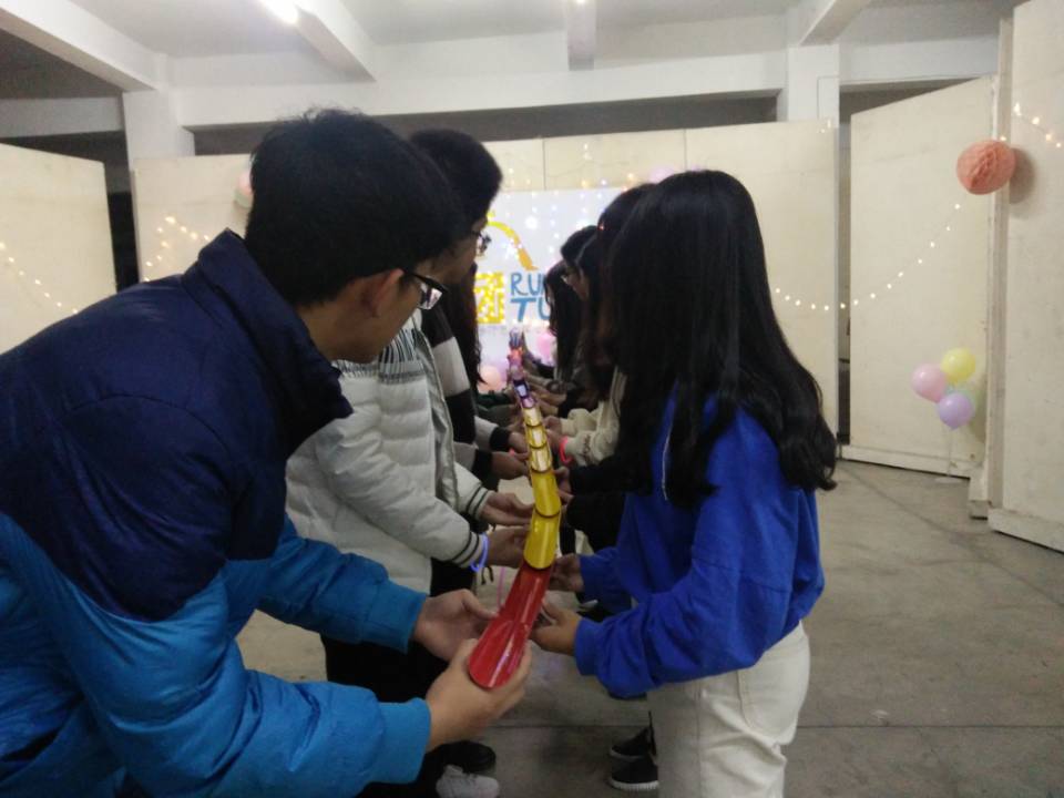 首先是破冰游戏,耍大牌环节让干事们彼此得以认识,欢声笑语间心与心靠的更近。金龙拍拍操让现场氛围变得更加热烈。两轮游戏下来,大家的热情已经被充分调动起来。紧接着,干事们被分成四组进行游戏,群龙取水使他们懂得团结和认真思考的重要性,再接再厉游戏则考验了队员的配合默契度,兔子舞的音乐一响起就将活动推向高潮,手与手的交握,更是心与心的融合。再次,干事们围坐在一起,轮流上台分享自己的感受和对未来的期许。最后,由团委书记杜婷丽老师为本次团康活动作最后总结。