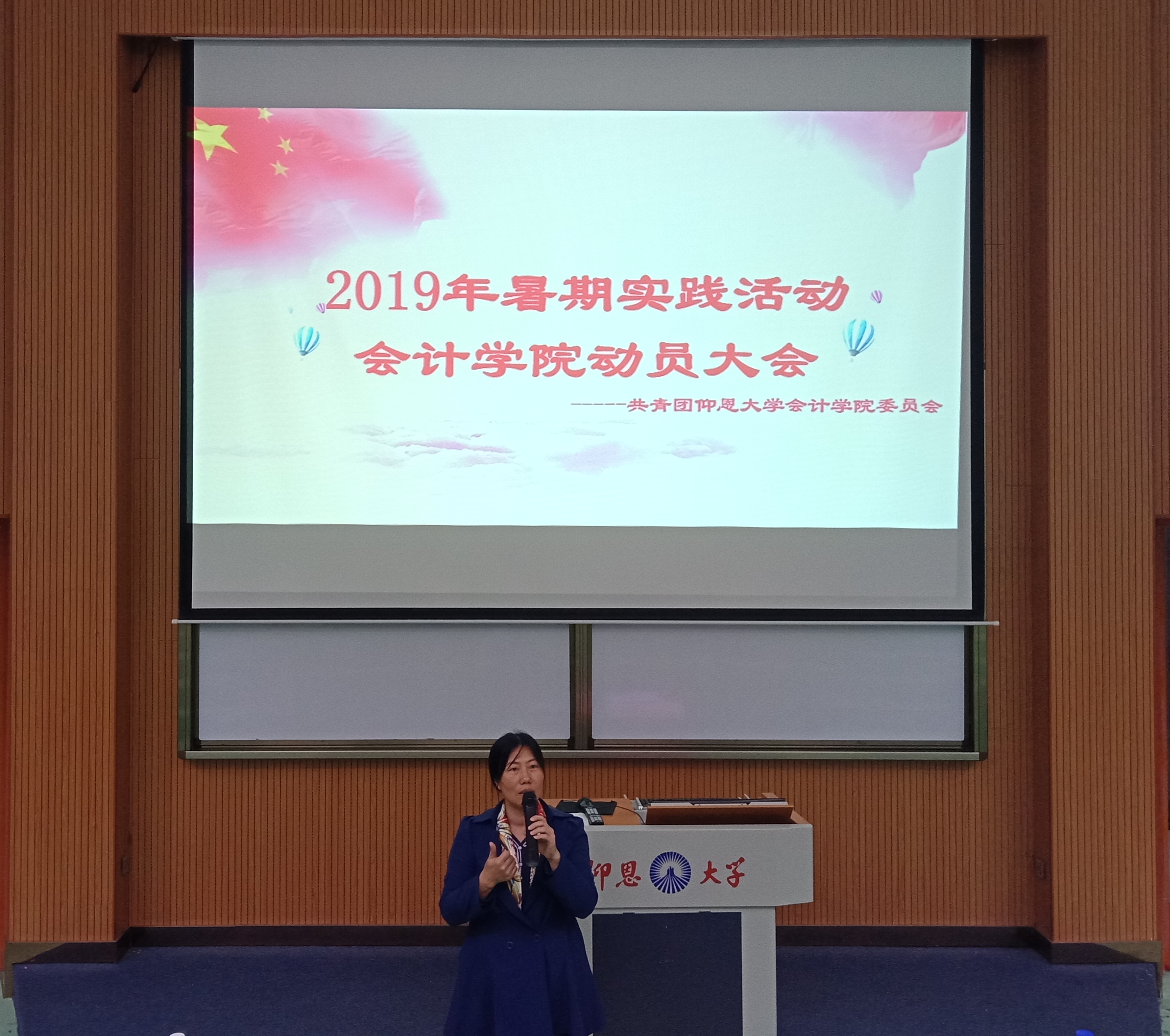 大会以观看本次五四合唱视频为开端,简短的合唱视频却诠释了排练的辛苦与付出。随即,党总支副书记吴锦霞总结了合唱表现,高度赞扬此次合唱的效果,感谢同学们展现会院风采,为会院争光。同时,为此次参加合唱的同学和背后辛劳的工作者颁奖。大会的第二个议程以往届暑期实践优秀队伍分享经验为始,让即将参加暑期实践的同学们更加了解暑期实践的意义与内容。随后,yl9193永利集团院长何杨英发表讲话,鼓励同学们热情积极的参与暑期实践,感受实践带给自己的蜕变和成长。yl9193永利集团团委书记杜婷丽细致的讲解了此次暑期实践的时间和注意事项。最后,大会在18级辅导员林金狮的总结中落下帷幕。