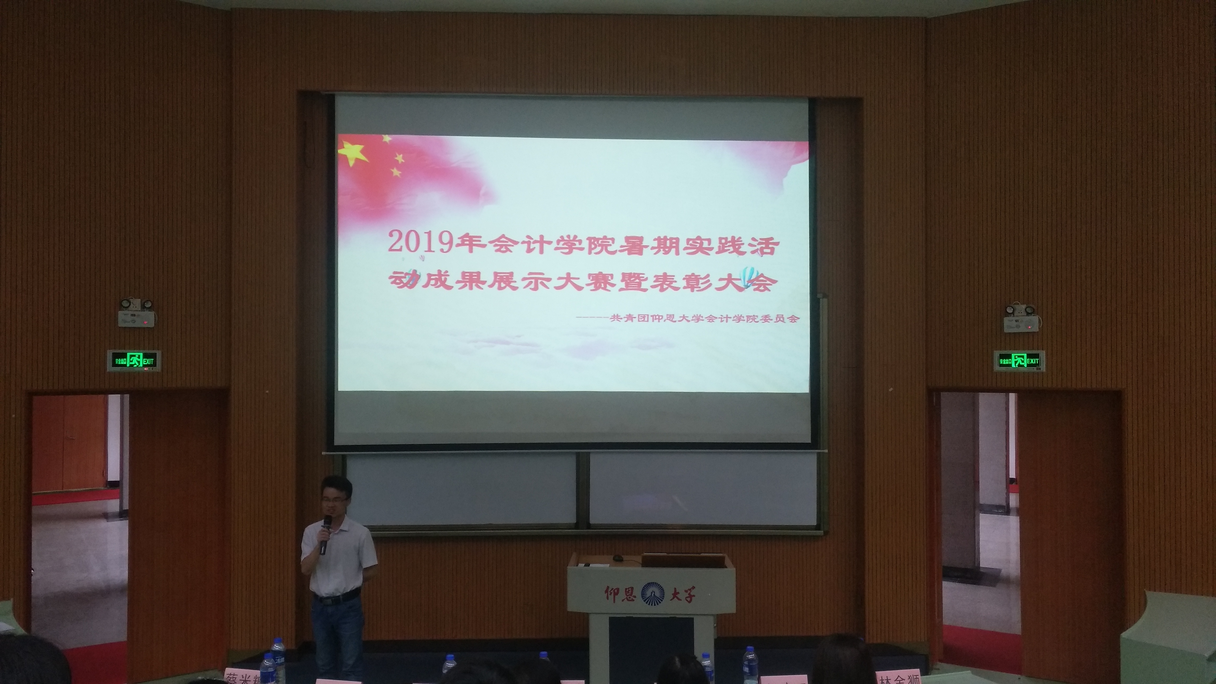 18级15支实践队伍也在会上进行实践成果展示,每支队伍娓娓动听的讲述了实践过程中的学与知。经过评选,由赴龙岩市上杭县步云乡政府暑期实践队,赴漳州平和小溪“网柚”暑期实践队和赴宏兴会计机构暑期实践队获得此次实践的一等奖。林金狮老师总结此次实践,表示会院学子精神饱满,热情服务展仰恩风采,为之骄傲自豪。