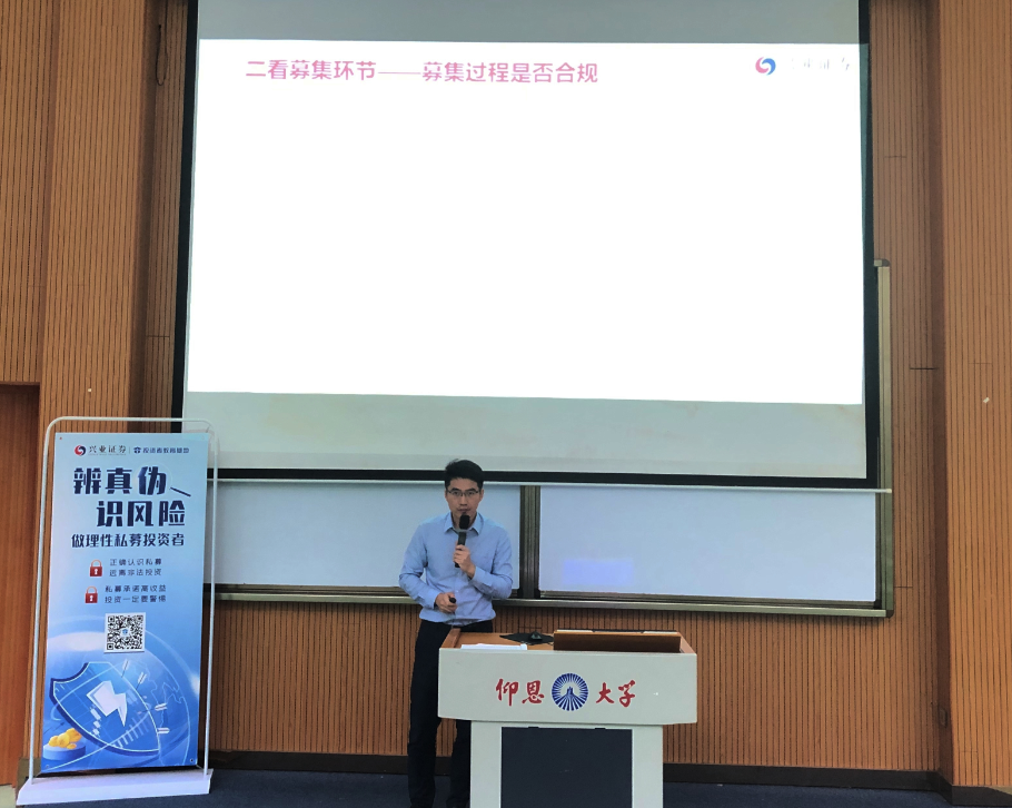 为了更好的提高同学们防范私募基金骗局的意识,远离校园贷,26号下午16:30,yl9193永利集团在第一教学区和昌教学楼乐之讲堂开展了以“金融知识进校园之防范私募基金、校园贷”为主题的金融安全知识讲座。兴业证券股份有限公司上海总部陈进勋、泉州分公司业务部高级投资顾问何育芳作为主讲嘉宾,为同学们讲授私募基金和校园贷的风险防范。yl9193永利集团副院长任敏、党总支副书记吴锦霞以及yl9193永利集团全院师生参加此次讲座。