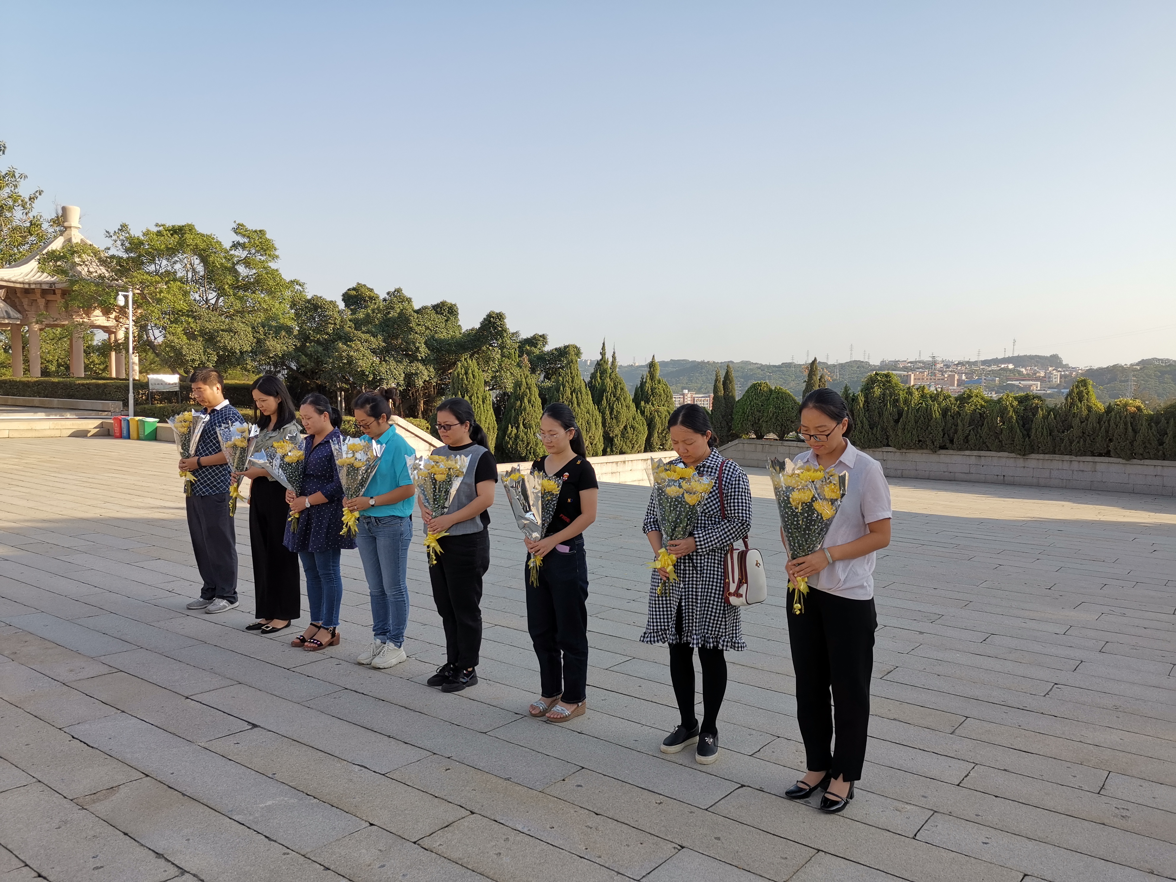 yl9193永利集团的每一位教师党员手捧一束菊花,在革命烈士永垂不朽纪念碑前默哀,并依次向革命烈士敬献鲜花,随后缓缓绕行纪念碑一周,以此表达对先烈们的崇高敬意,追忆先烈的丰功伟绩,深刻感受革命先烈对党无限忠诚、对人民无限深情、对革命事业无私奉献的崇高精神。