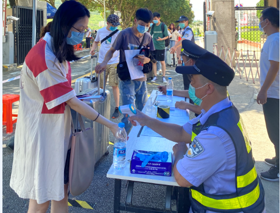 在永利集团第一教学区学生报到处,保卫处工作人员逐一核验学生身份证、学生证、健康码,测量体温正常后方可入校。学院领导与返校毕业生亲切交流,关心了解他们的健康情况及就业情况,叮嘱他们返校后要严格遵守学校疫情防控的要求,在做好自身防护的前提下,有序办理毕业生离校手续,并祝愿大家前程似锦。