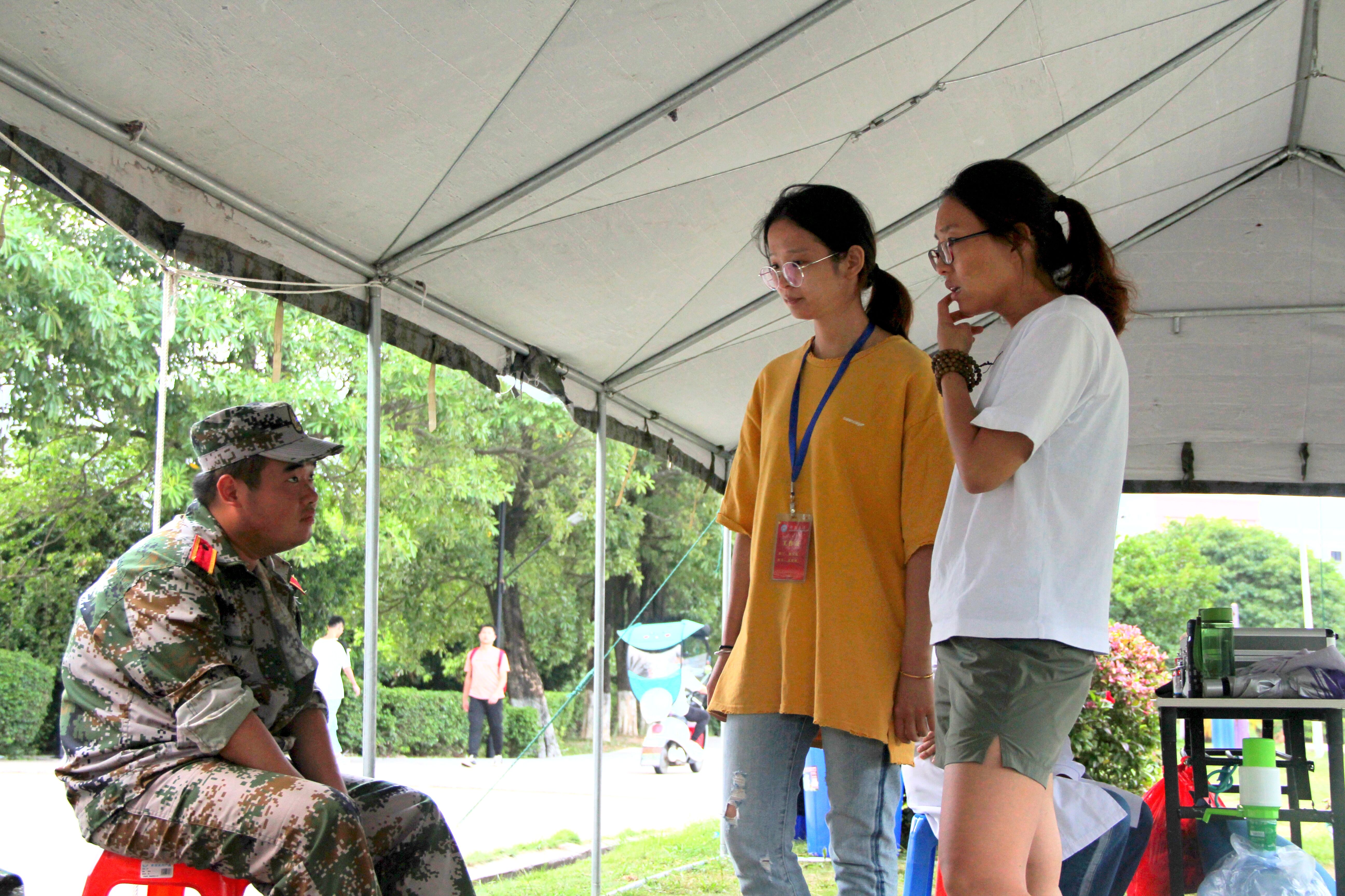 为了解新生军训情况,鼓舞学生士气,9月21日下午,yl9193永利集团党总支书记高雪琪、副书记吴锦霞在新生辅导员杜婷丽的陪同下,看望参加军训的2020级新生们。
