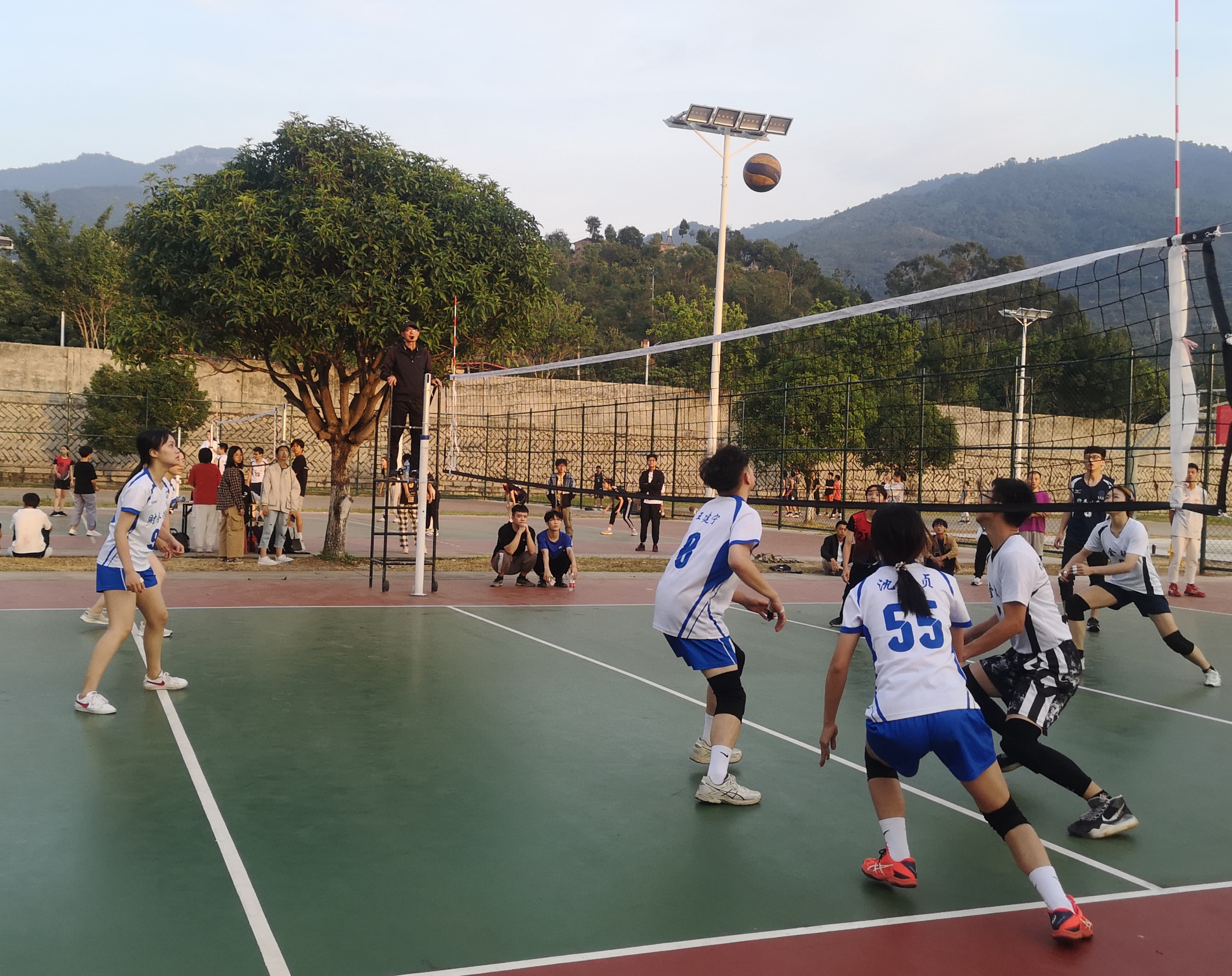 一声哨响,我院财务管理系与金融系的比赛拉开了序幕。“财管,加油!”的助威声铿锵有力,此起彼伏。被同学们的热情所感染,只见健儿们各施绝技,发球、起跳、拦网、扣球,充分发挥出自己精湛的个人技术和技术配合。每一个传球都凝聚着智慧与团结,每一次接球都尽显他们青春的活力。一次次精彩的得分引来欢呼阵阵。