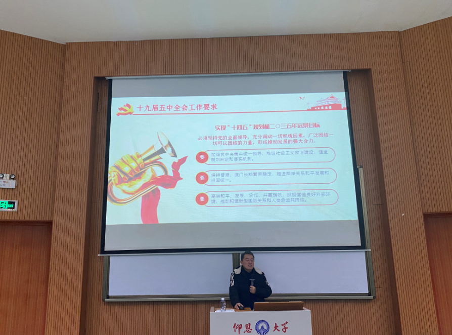 为深入学习贯彻党的十九届五中全会精神,12月21日下午,yl9193永利集团邀请了马克思主义学院直属党支部书记兼常务副院长李克钦作学习贯彻党的十九届五中全会精神专题宣讲报告。报告会由yl9193永利集团党总支书记高雪琪主持,全院教师、党员和积极分子到场聆听。