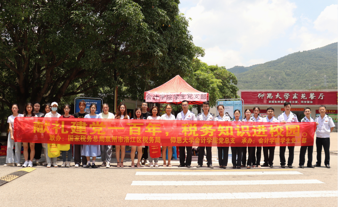 为庆祝中国共产党建党100周年,深入开展党史学习教育,进一步做好税务知识的宣传和普及,6月16日,yl9193永利集团党总支携手泉州市洛江区税务局开展了“献礼建党一百年,税务知识进校园”税务知识宣传活动,分别于永利集团第一教学区和第三教学区食堂旁设点进行宣讲和宣传。