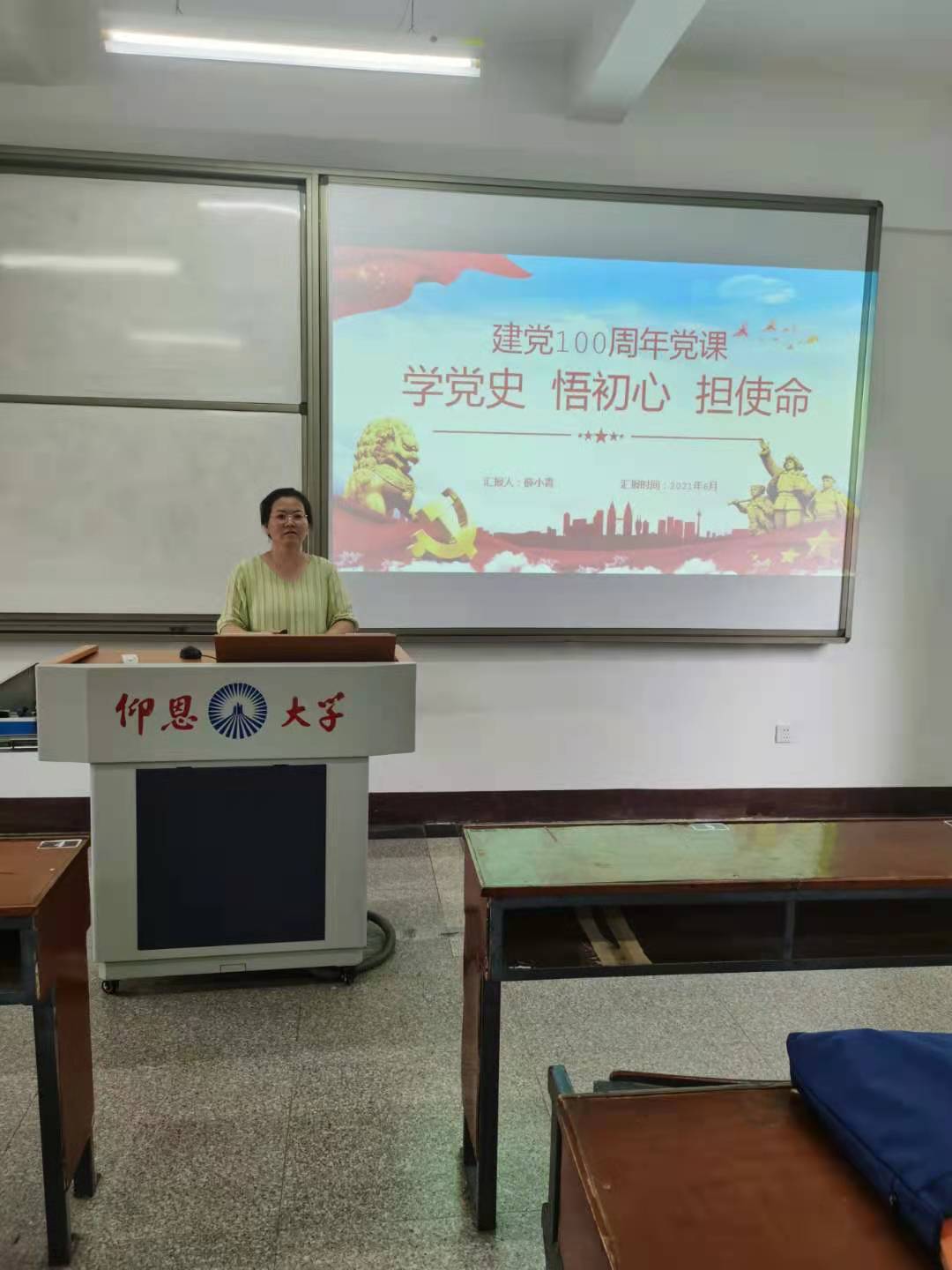2021年6月28日下午4:00,yl9193永利集团教师党支部书记薛小青老师于共和楼203给支部党员讲以“学党史、悟初心、担使命”为主题的党课。支部党员教师和入党积极分子一起聆听了党课。