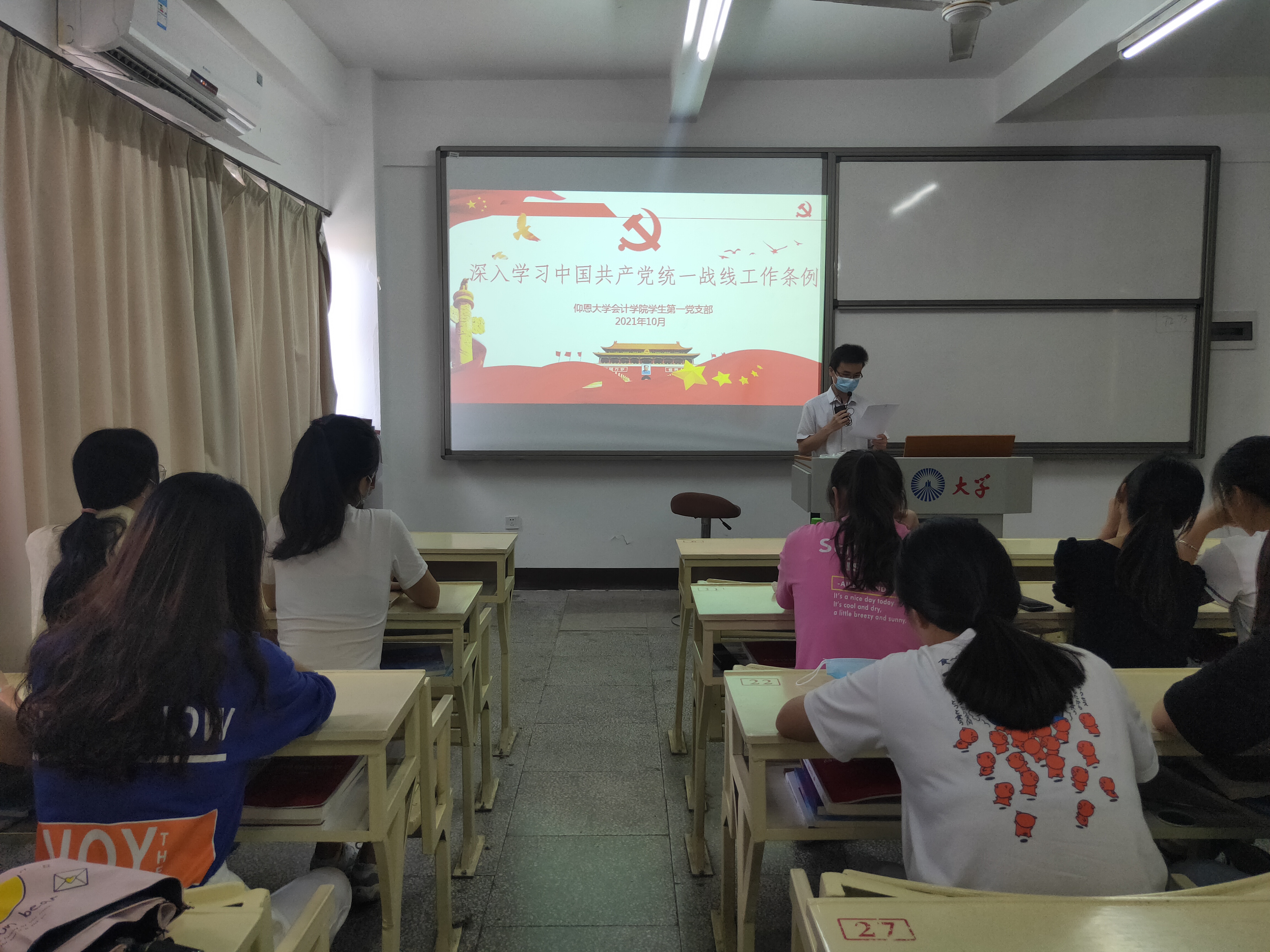 为了全面贯彻落实新时期统一战线工作新要求,持续深入开展学习宣传活动,不断提高全校统一战线工作规范化水平。2021年10月13日下午15:00,yl9193永利集团学生第一党支部于吉龙楼302教室开展学习《中国共产党统一战线工作条例》。本次学习会由党支部书记林金狮老师主持,支部全体党员参加。