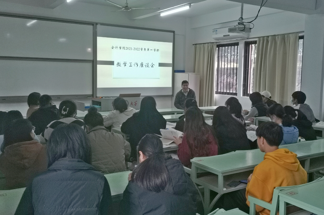 会计学系主任蒋鹏飞老师给参会的同学介绍了召开座谈会的目的,召开座谈会主要为了解学院的教育教学情况,了解同学们对学院各项工作的建议和意见,希望同学们本着对自己负责、对老师负责和对学院负责的精神畅所欲言。