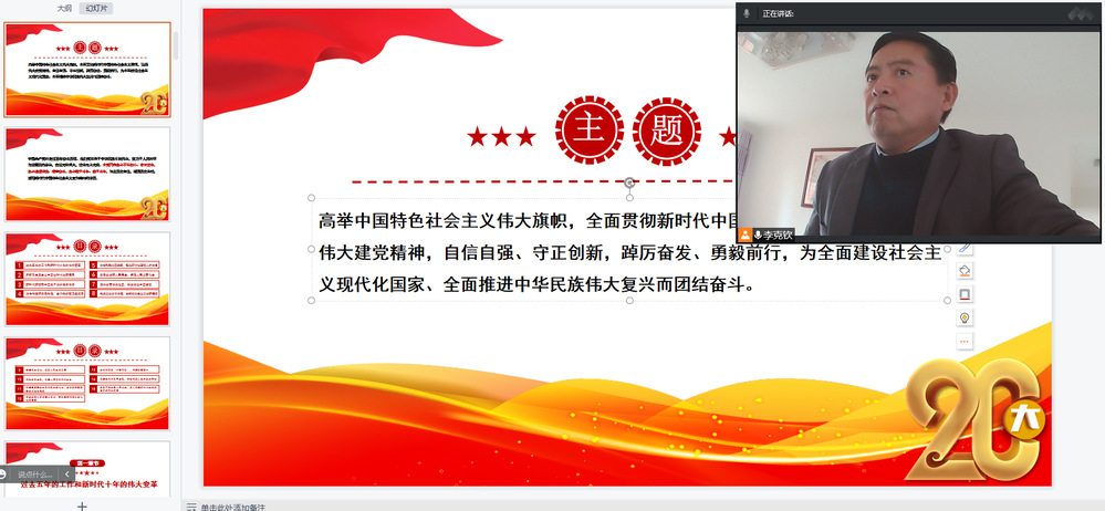 李克钦围绕过去五年的工作和新时代十年的伟大变革、开辟马克思主义中国化时代化新境界、新时代新征程中国共产党的使命任务、加快构建新发展格局,着力推动高质量发展、实施科教兴国战略,强化现代化建设人才支撑等方面对党的二十内容和精神进行了全面系统的阐述。李克钦老师指出,中国共产党第二十次全国代表大会,是在全党全国各族人民迈上全面建设社会主义现代化国家新征程、向第二个百年奋斗目标进军的关键时刻召开的一次十分重要的大会,大会提出了一系列“新观点、新论断、新思想”,这是我们在长期实践中得出的至关紧要的规律性认识,它为我们党永葆生机活力、走好新的赶考之路提供了理论指导和方向指引,必须持续深入学习,融会贯通领悟大会精神。