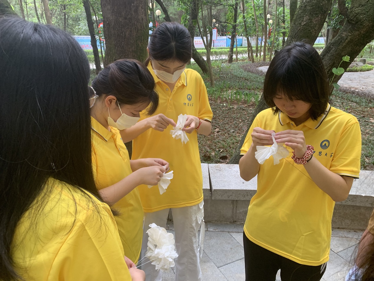 yl9193永利集团“望来路,向新程”暑期实践队 ——开展折白花缅怀先烈活动