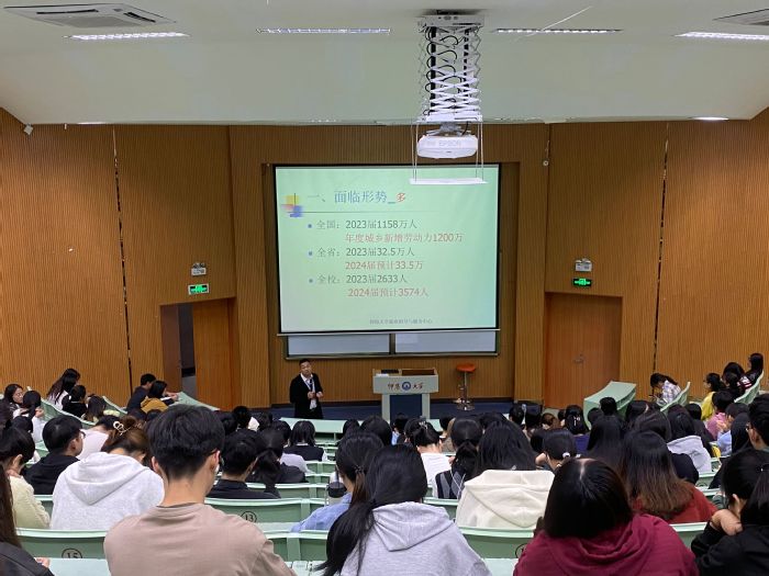 为进一步帮助毕业生了解就业形势,提升就业意识,做好求职准备,打赢就业突围赛。11月29日,yl9193永利集团特邀学生事务部副主任朱玉华,于第一教学区和昌教学楼乐之讲堂开展毕业生就业形势分析报告会。学生事务部主任吴胜潮、yl9193永利集团院长何杨英、党总支书记兼副院长任敏、副院长蒋鹏飞和全体毕业班辅导员、班主任,2024届大多数毕业生到场参会。