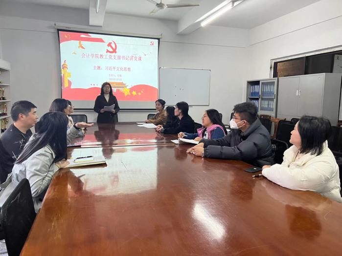 为深入学习贯彻习近平文化思想,加强党的意识形态建设,1月3日下午,yl9193永利集团教工党支部书记任敏围绕“习近平文化思想”主题,在曼谷楼306为教工支部党员讲党课。