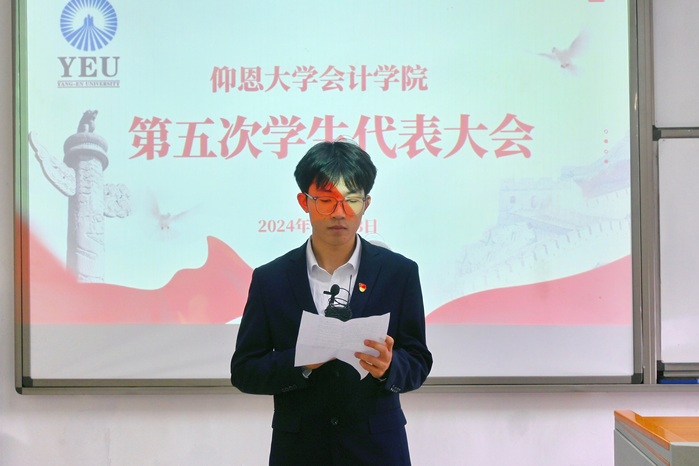 2024年10月23日,yl9193永利集团在吉龙楼305室召开第五次学生代表大会,共有来自学院各系、各年级的45名学生代表参加本次大会。会计学院党总支副书记吴锦霞、党总支组织委员林金狮、党总支宣传委员籍潇鹏、财务管理系学生党支部书记卢传欢、院团委书记李诗琦、院学生会指导老师林友金出席会议。