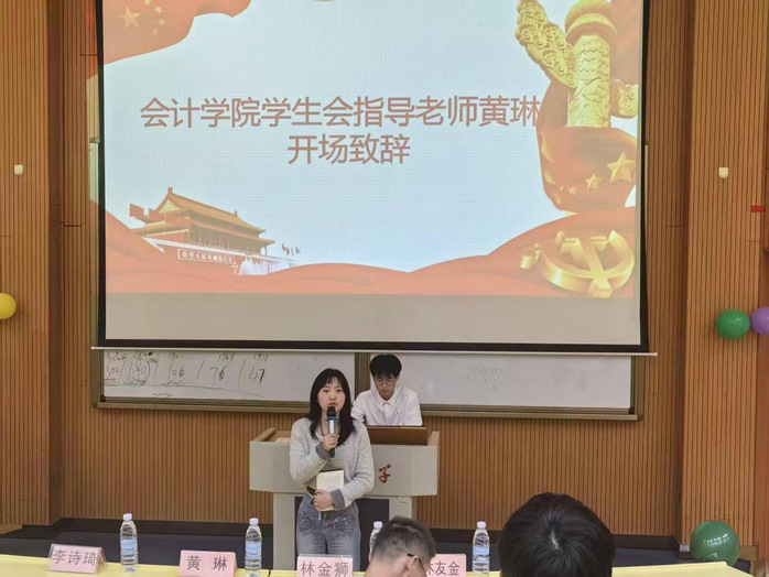 大会伊始,黄琳老师发表开场致辞,感谢第十一届干部的实干付出,肯定其任期内的成长与贡献,强调团学融工作的服务价值,并寄语新干部接续奋斗。