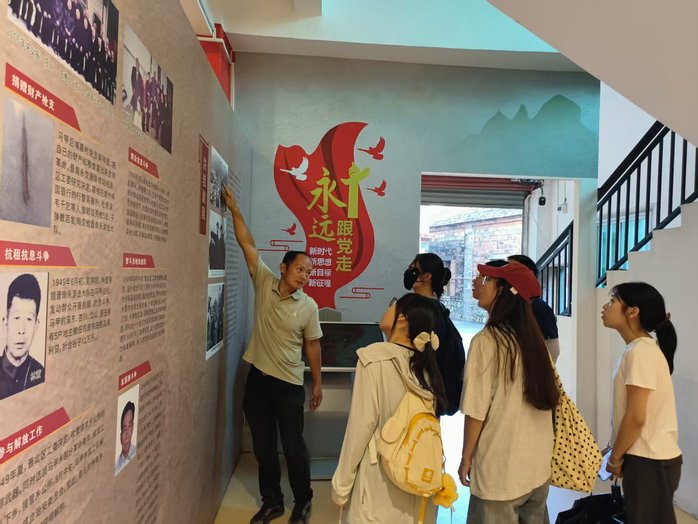 活动当天,党员们首先参观了洪四村乡村治理展馆。在展馆内,党员们通过观看历史图片、文献资料和实物展示,详细了解了洪四村在党的领导下,如何从一个贫困落后的乡村发展成为一个治理有序、经济繁荣的现代化新农村。展馆内的每一张照片、每一段文字都生动地展现了洪四村人民,艰苦奋斗、自力更生的精神风貌。